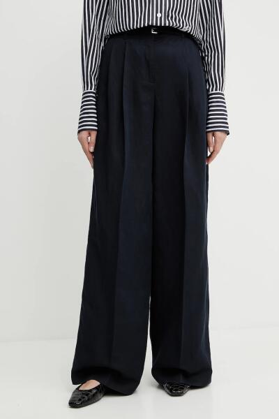 BOSS nadrág vászonkeverékből női, sötétkék, magas derekú egyenes, 50538045 - sötétkék 38